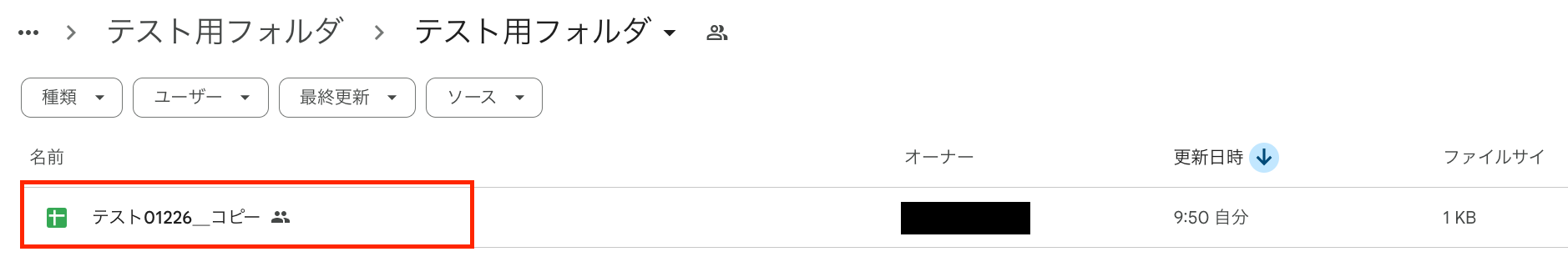 Google Driveの画面を開き、ファイルが複製されているか確認しましょう! 無事に複製されましたね。 以上で、フローボットの完成です!