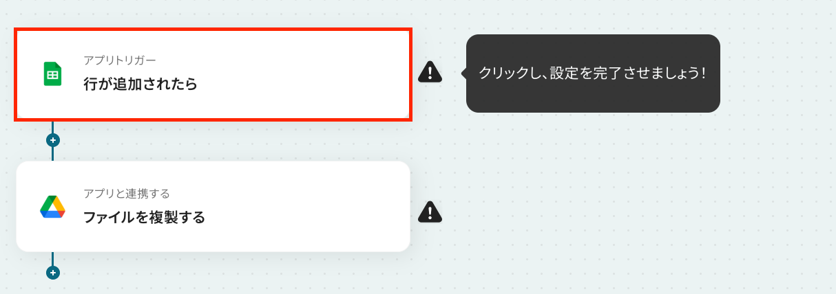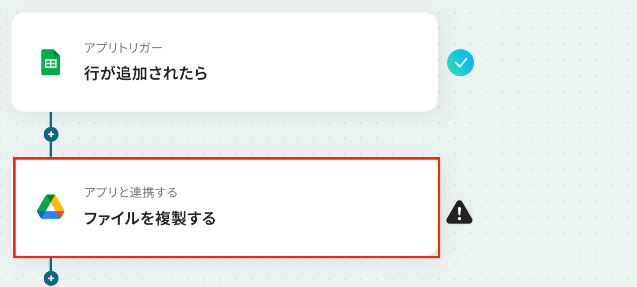 Google スプレッドシートのトリガー設定では、監視対象としたいスプレッドシートのIDやシートIDを任意で設定してください Google Driveでのファイル複製オペレーションでは、複製したい元のファイルのIDや、複製後のファイル名、保存先のフォルダIDを、トリガーで取得した値や固定の値を使用して任意で設定できます ■注意事項