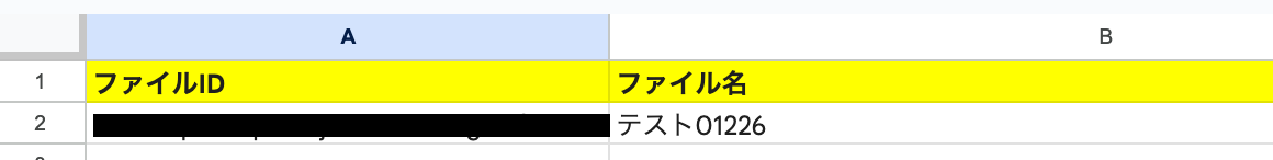 そのため、「ファイルID」と「ファイル名」が記録されたGoogle スプレッドシートを用意しましょう。 「ファイルID」はGoogle Driveで対象のファイルを開き、URL(file/d/ファイルID部分/)から確認できます。 ※下図は、ファイル管理を行っているGoogle スプレッドシートの例です。