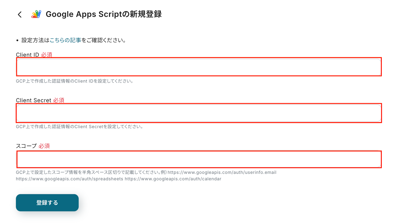 Google Apps Scriptの詳しい連携方法はこちらを確認してください。