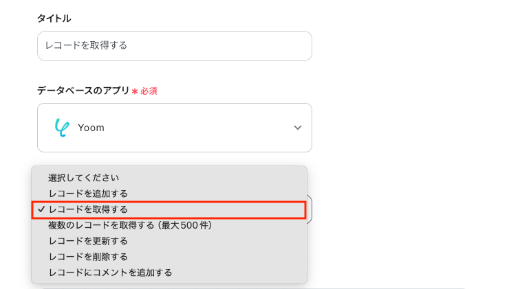 二つ目のオペレーションにある、「レコードを取得する」をクリックしてください。