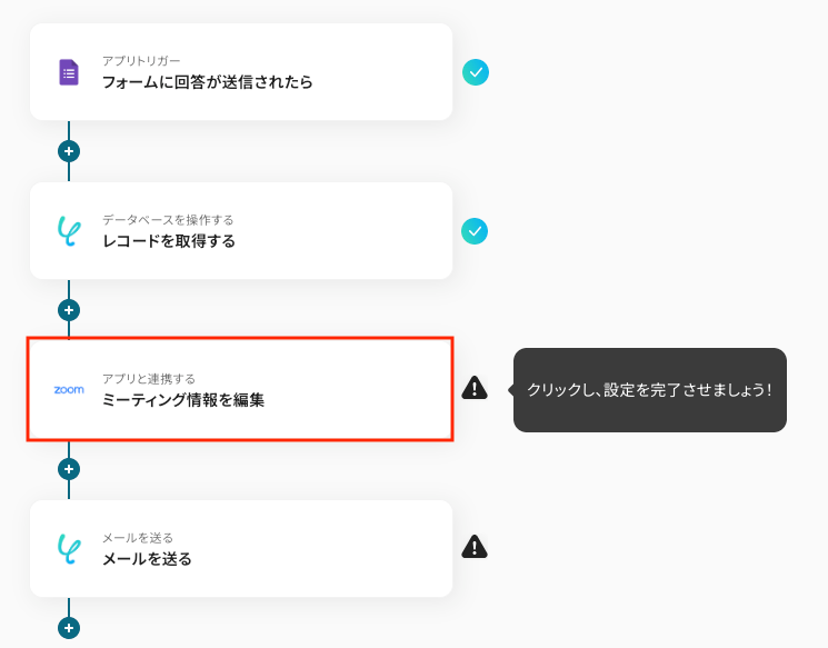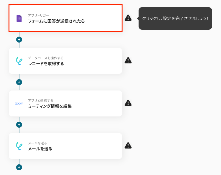 それではここから代表的な例として、Googleフォームが送信された際、その内容をもとにZoomミーティングの情報を自動で編集するフローを解説していきます!