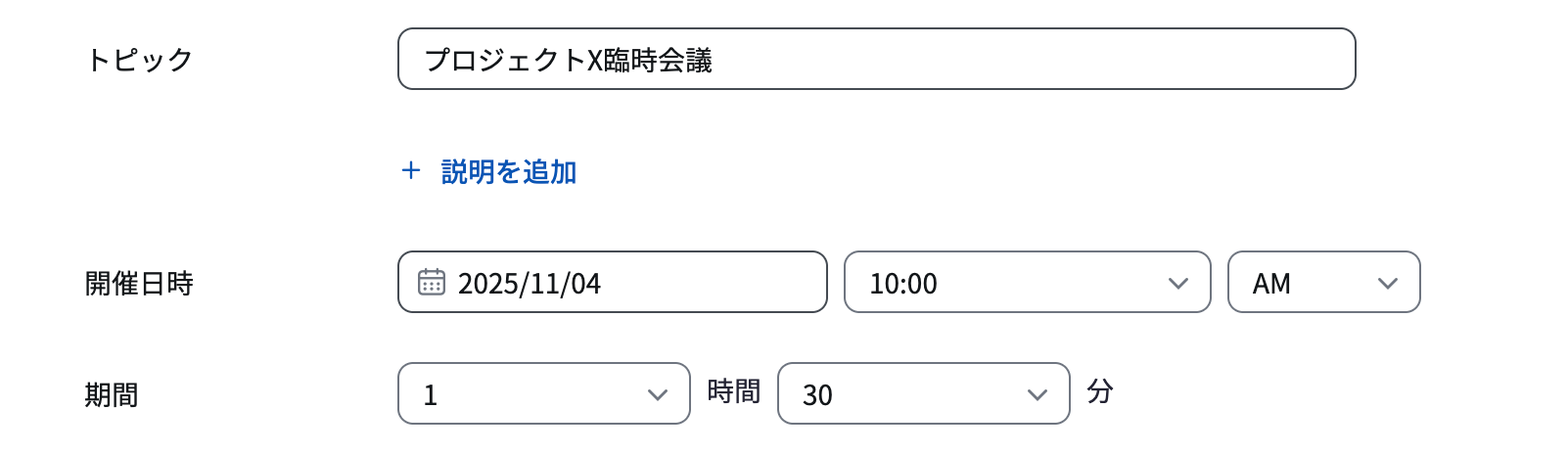 ※この記事では、サンプルとして以下のZoomミーティングを更新対象にしています。