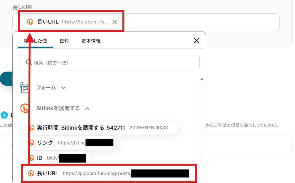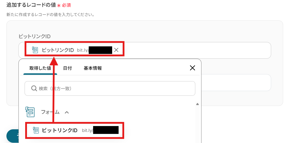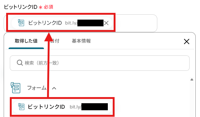 「ビットリンクID」を「取得した値」から設定しましょう。
