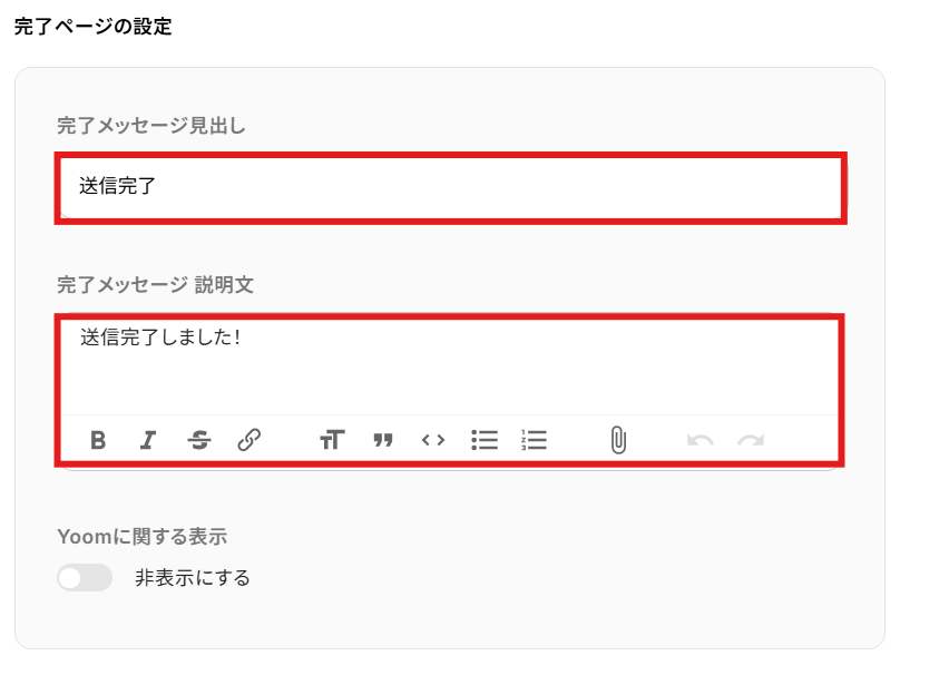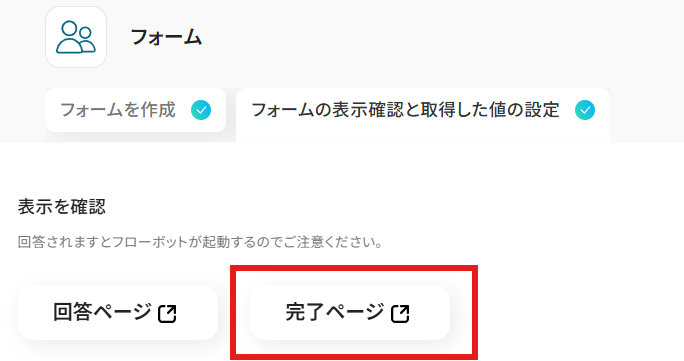 確認できたら元のページに戻って、「完了ページの設定」を行いましょう。