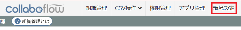 コラボフローとYoomのマイアプリ登録 まず、コラボフローの設定画面でシステム管理エリア から環境設定 に進んでください。
