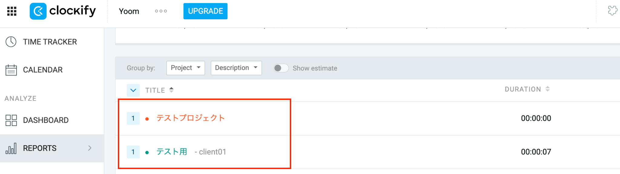 ここで、Clockifyに移動して、対象となるタイムエントリレポートを確認しましょう。 今回は以下が対象となります。
