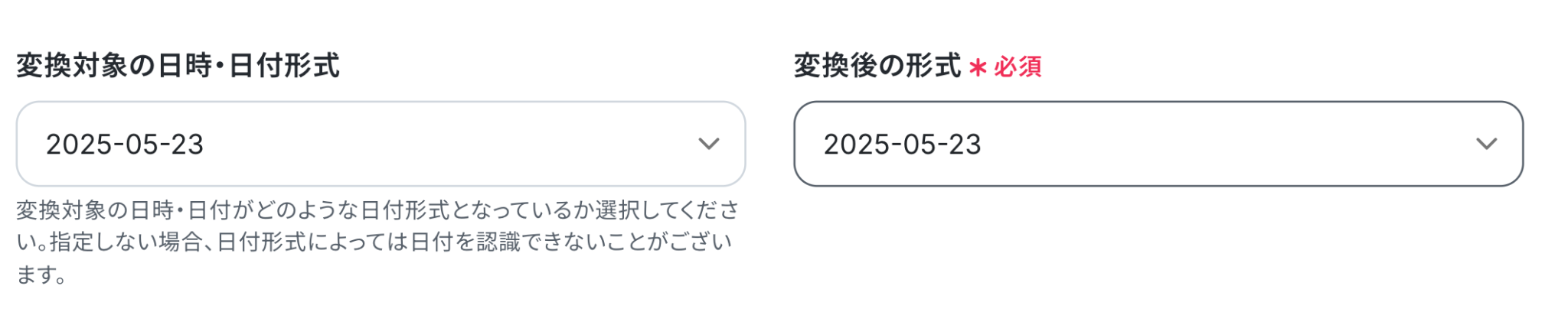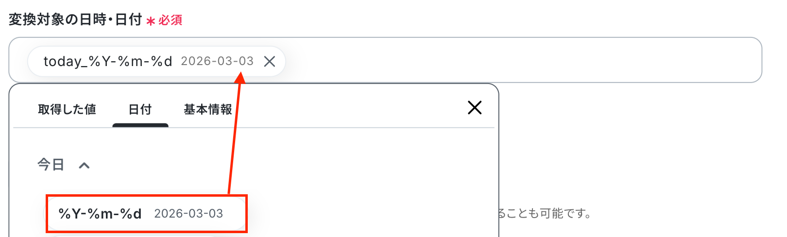 「変換対象の日時・日付」 は、日付変数を使用して設定しましょう。 日付変数を設定することで、フローボットを起動した日時が自動で反映されます。日付変数について