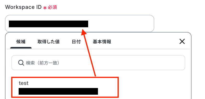 「WorkspaceID」は、候補から選択してください。 ここで指定したワークスペースの詳細レポートを取得します。