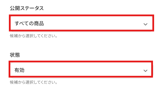 検索したい商品の条件を検索しましょう。 今回は例として以下の条件で検索するように設定しました!