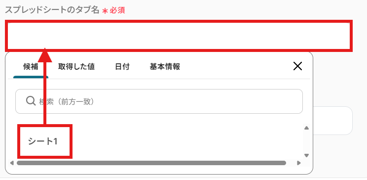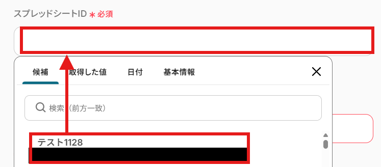 使用したいGoogle スプレッドシートの「スプレッドシートID」と「シートID」を候補から選択しましょう。