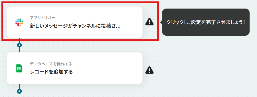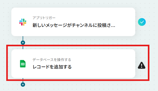 Slackのトリガー設定で、メッセージの取得対象とするチャンネルを任意で設定してください Google スプレッドシートのオペレーション設定で、レコードを追加するスプレッドシート及びシートを任意で設定してください ■注意事項