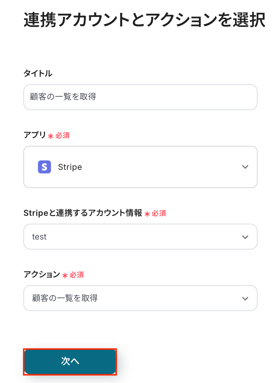 続いて、前のステップで取得した値を利用して、Stripeの顧客一覧から指定期間分だけ取得する設定を行いましょう。