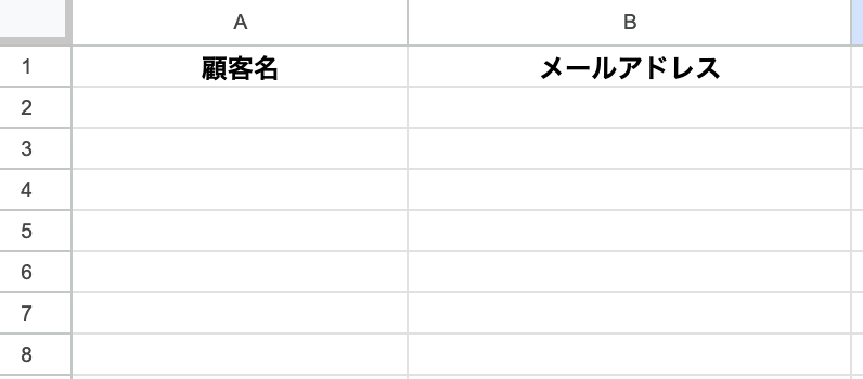 前段で設定したGoogle スプレッドシートのテーブル範囲から、列名(ヘッダー)が自動表示されます。