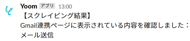 YoomのGmail連携ページを開く → ページ内に表示された「メール送信」という文字列を読み取るという流れです。