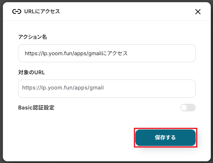 これにより、Yoomが自動でブラウザを開いて指定したWebページにアクセスします。