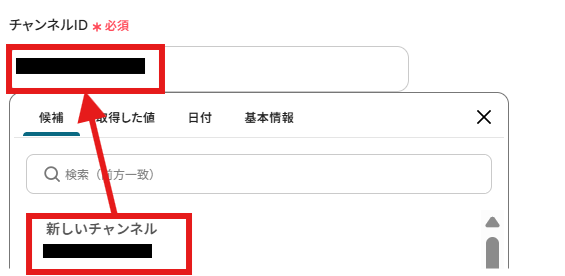 該当メッセージのチャンネルIDを「候補」から入力してください。