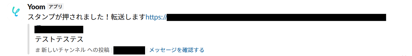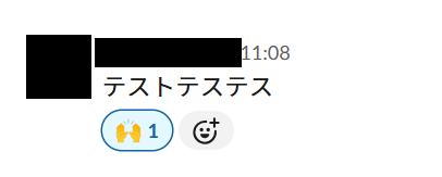 上記設定が終わったら、Slack上でWebhookイベントである「他のチャンネルに送りたいメッセージにスタンプを押す」を行います。