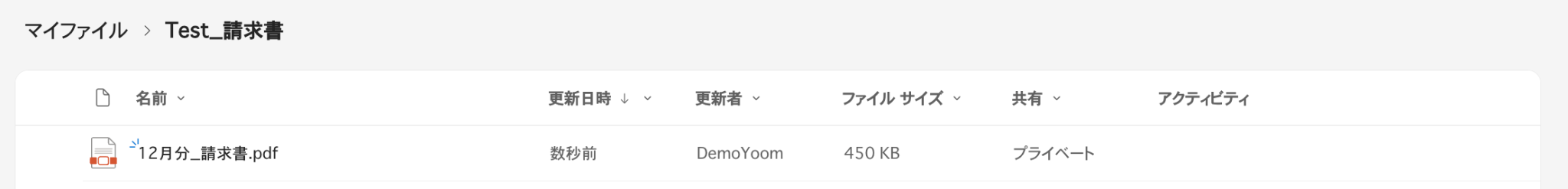 OneDriveの「フォルダID」に設定したフォルダ内に、実際にファイルをアップロードしてください。