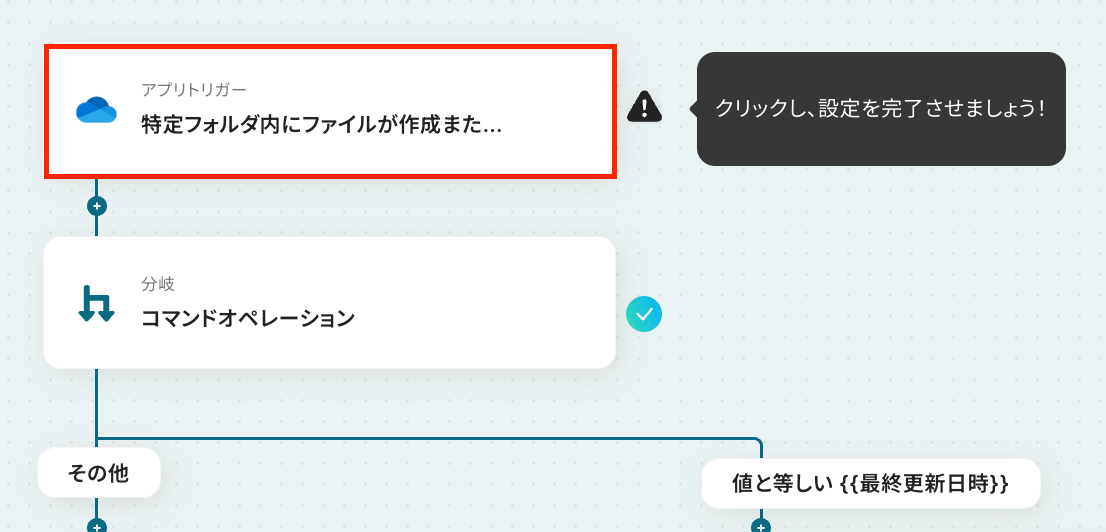 コピーしたテンプレートの「特定のフォルダ内でファイルが作成または更新されたら」をクリックしてください。