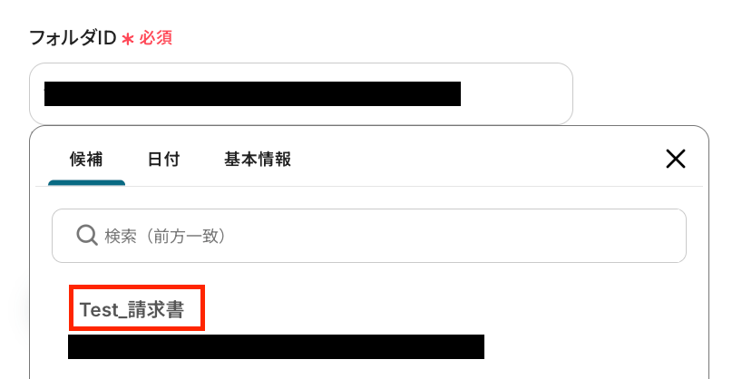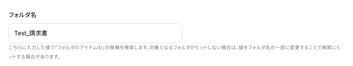 「フォルダID」欄をクリックしても、フローで使用したい該当のフォルダが表示されない場合は、「フォルダ名」の設定欄をご活用ください。