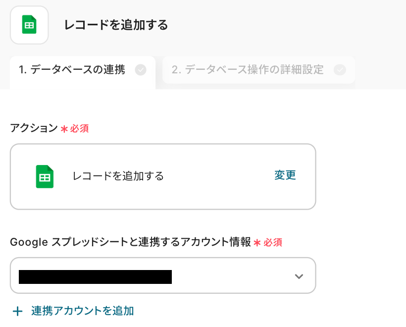 アクションはそのままで、連携するアカウント情報を確認します。