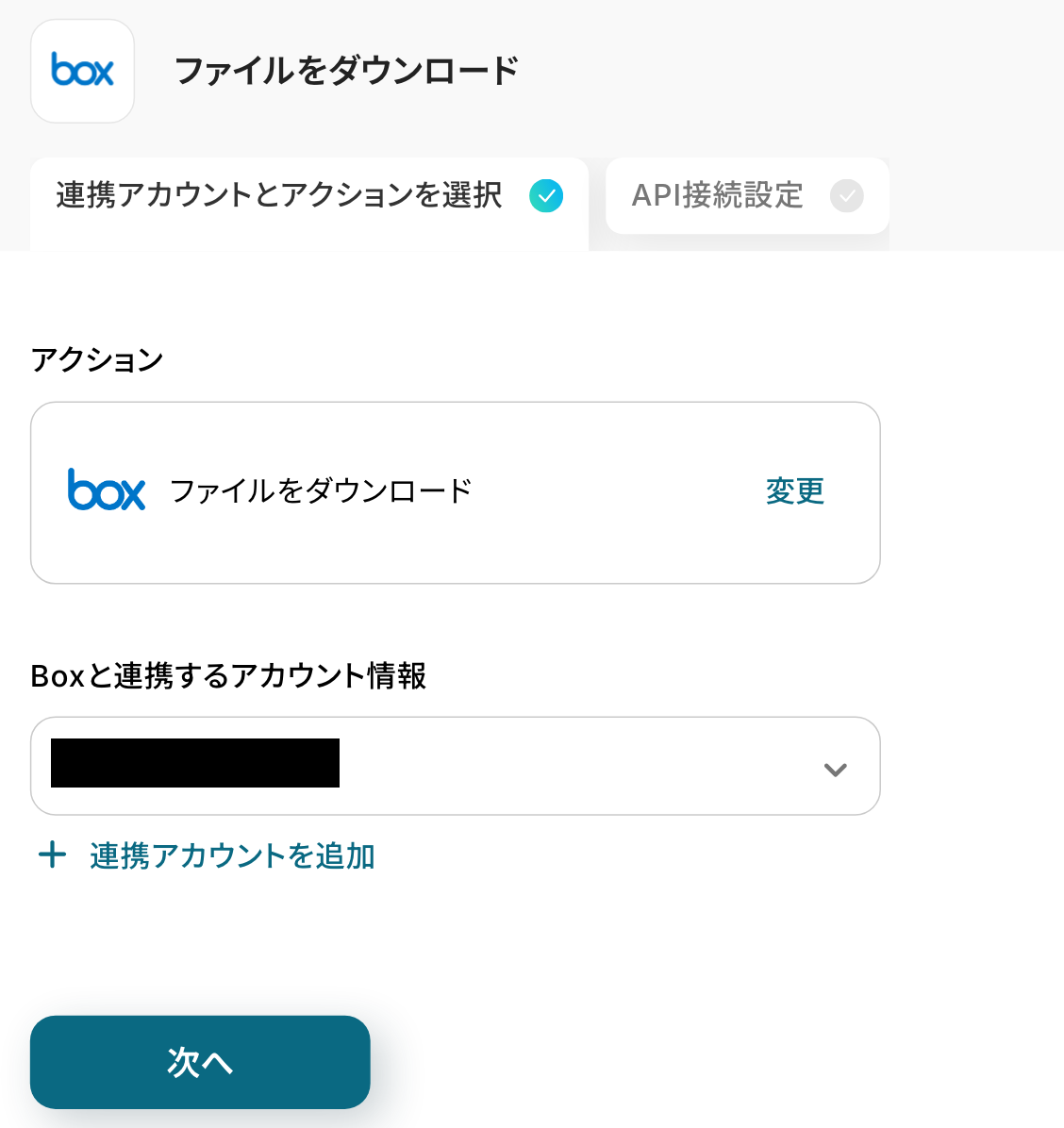 ステップ4:Boxのファイルをダウンロードするアクション設定