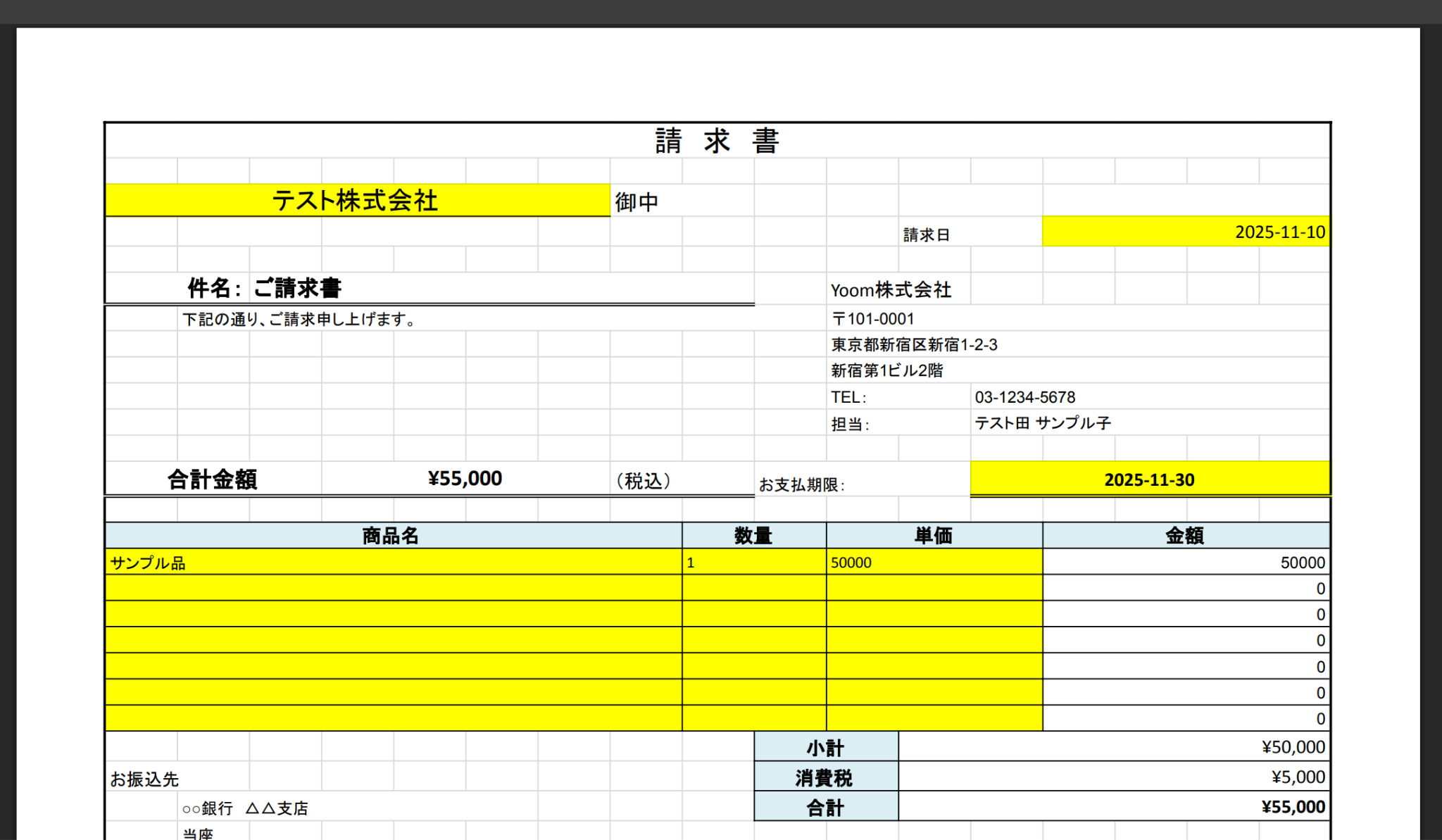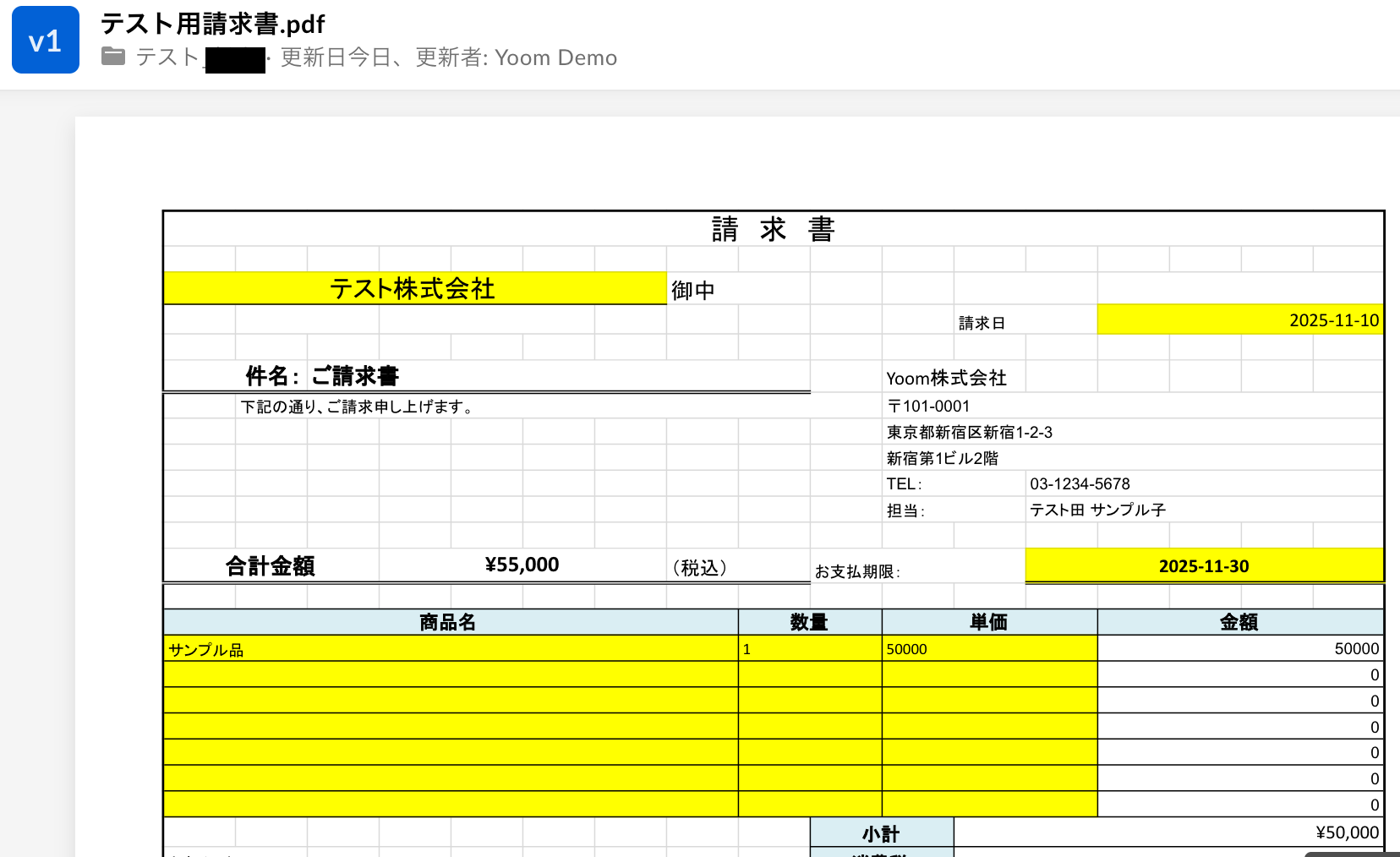 アップロードしたら、Yoomの画面で「テスト」をクリックしましょう!