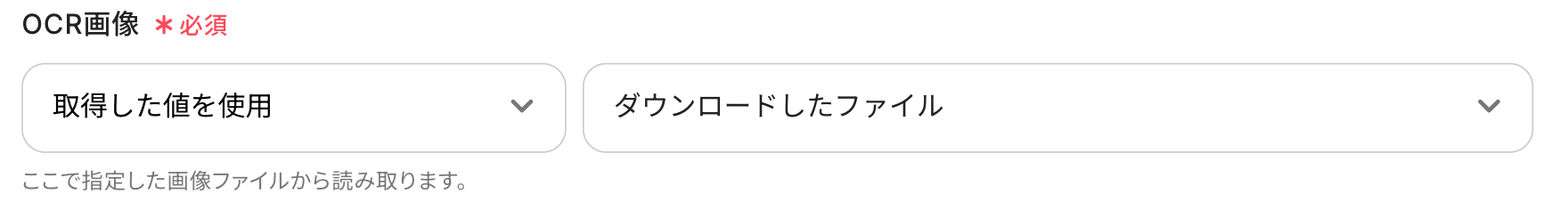 今回は先ほど取得した値を使用するため、プルダウンより「ダウンロードしたファイル」を選択してください。