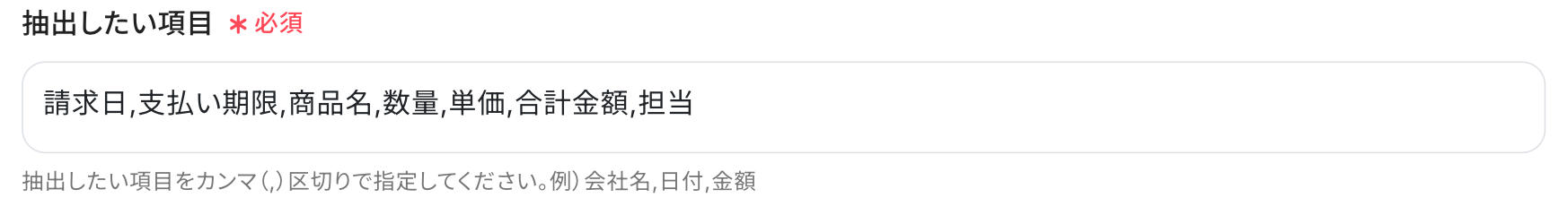 「抽出したい項目」は、入力欄下の注釈を参考に、画像・PDFから読み取りたい項目を入力してください。