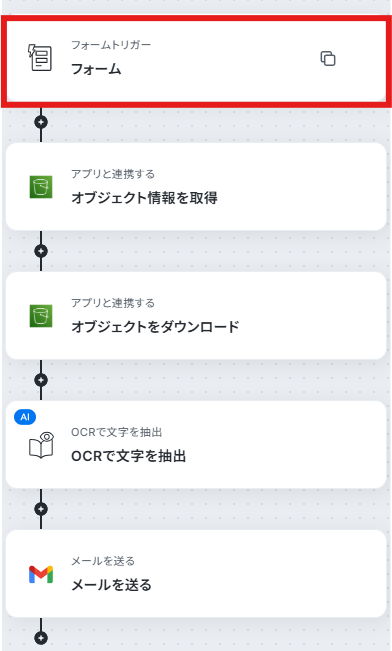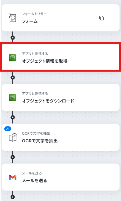 それではここから代表的な例として、フォームからの回答をトリガーに、Amazon S3から該当のPDFをダウンロードし、OCR機能でテキストを抽出して、その内容をGmailで通知するフローを解説していきます!