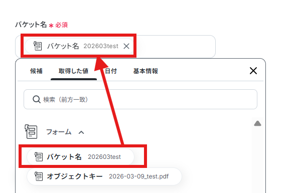 - Amazon S3のオブジェクト検索では、検索対象となるバケット名やオブジェクトキーを任意で設定してください。