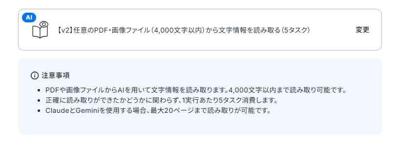 ※OCRや音声を文字起こしするAIオペレーションは、チームプラン・サクセスプラン限定の機能です。フリープランやミニプランでセットするとエラーになってしまうので、ご注意ください。