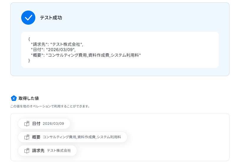 - OCR機能でPDFからデータを抽出する際に、請求書番号や金額など、取得したい項目を任意で設定してください