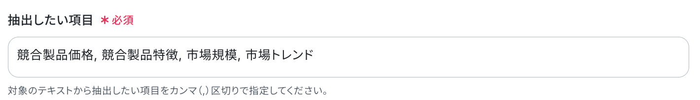 続いて、「抽出したい項目」 を設定します。 テンプレートを使用しているため、あらかじめ設定されています。 必要に応じて、入力欄下の注釈を参照して設定しましょう。