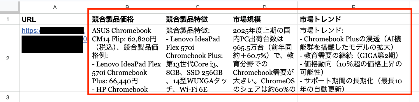 Google スプレッドシートのURLをもとにChatGPTでWeb検索を行い、任意の項目を取得し追加する