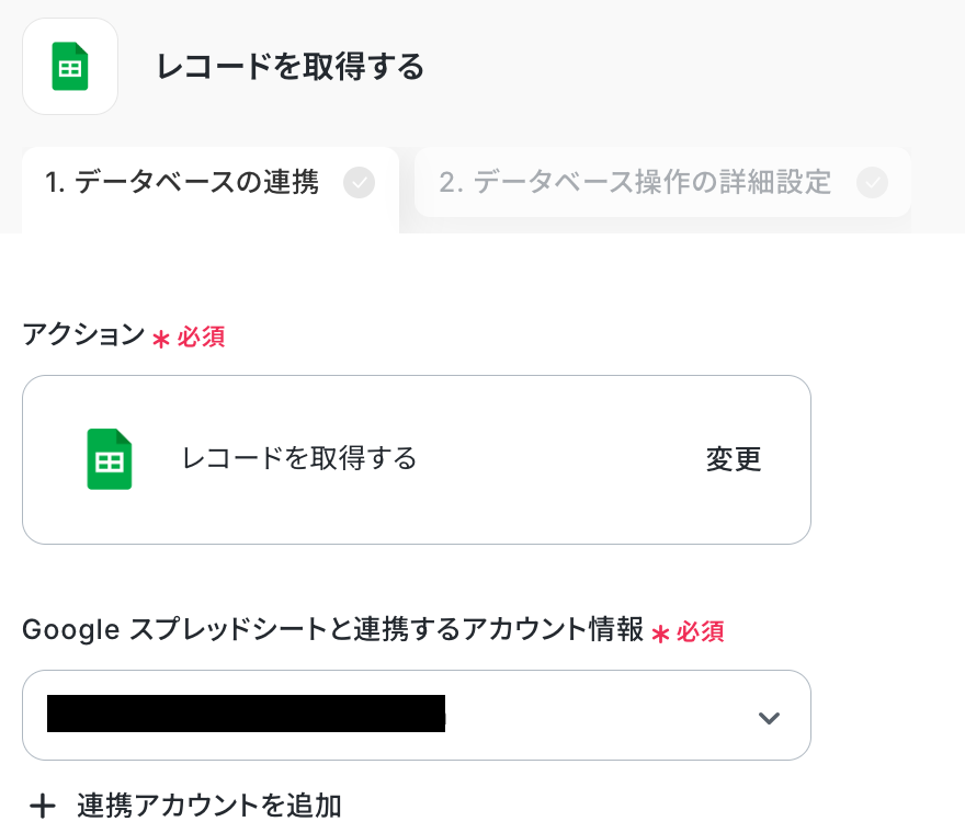 ステップ4:レコードを取得する設定 以下の赤枠をクリックしてください。 ここでは、指定したシートのレコードを取得する設定を行います。