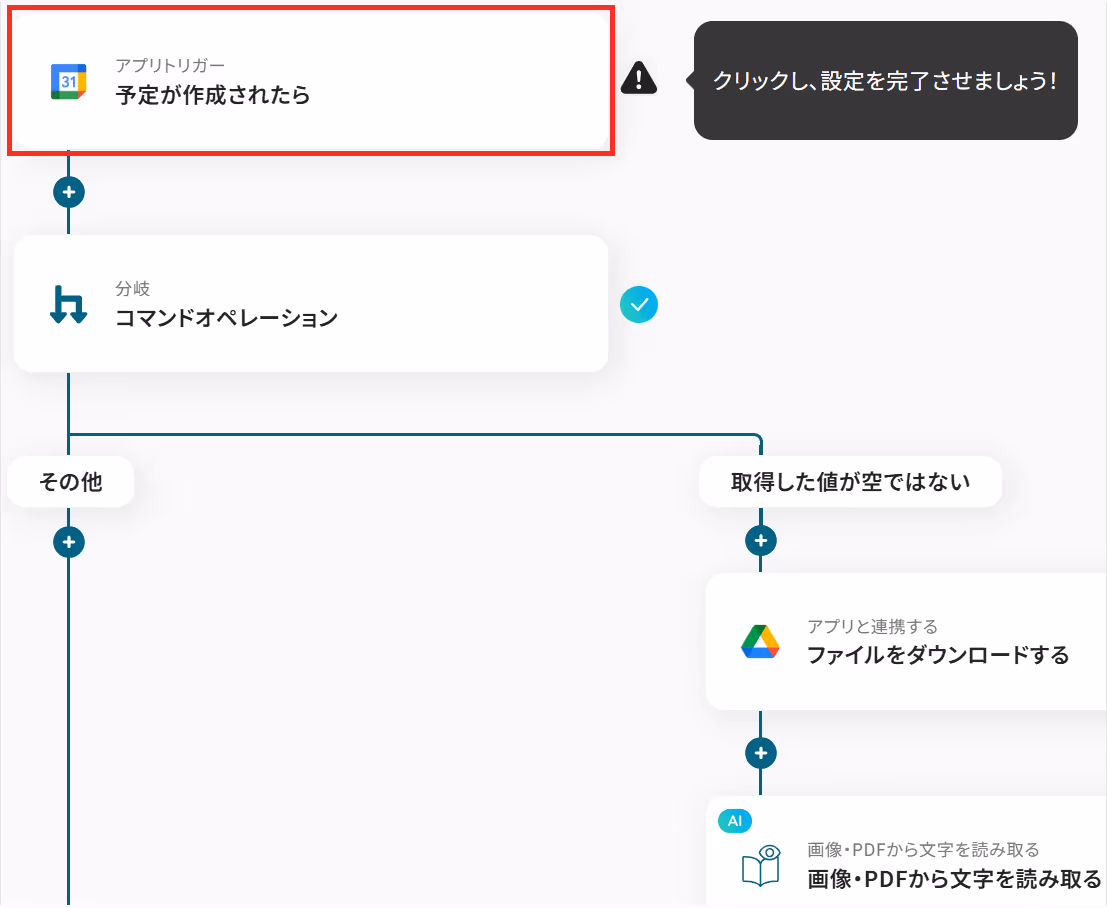 それではここから代表的な例として、Googleカレンダーで予定が作成されたら、添付ファイルをOCRで読み取り、内容をGmailで送信するフローを解説していきます!
