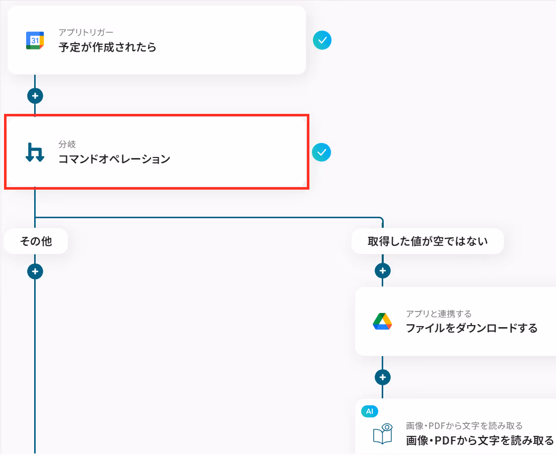 後続の処理に進むかどうか判別する設定をします。「コマンドオペレーション」をクリック。