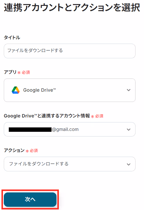ステップ3と同様、アクションは「ファイルをダウンロードする」のまま「次へ」をクリック。