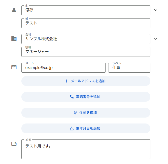 フローの作成を始める前に、あらかじめYoomと連携するGoogleコンタクトに、連絡先を登録しておきましょう!