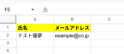 事前に、Google スプレッドシートで連絡先を追加するシートを用意しましょう。