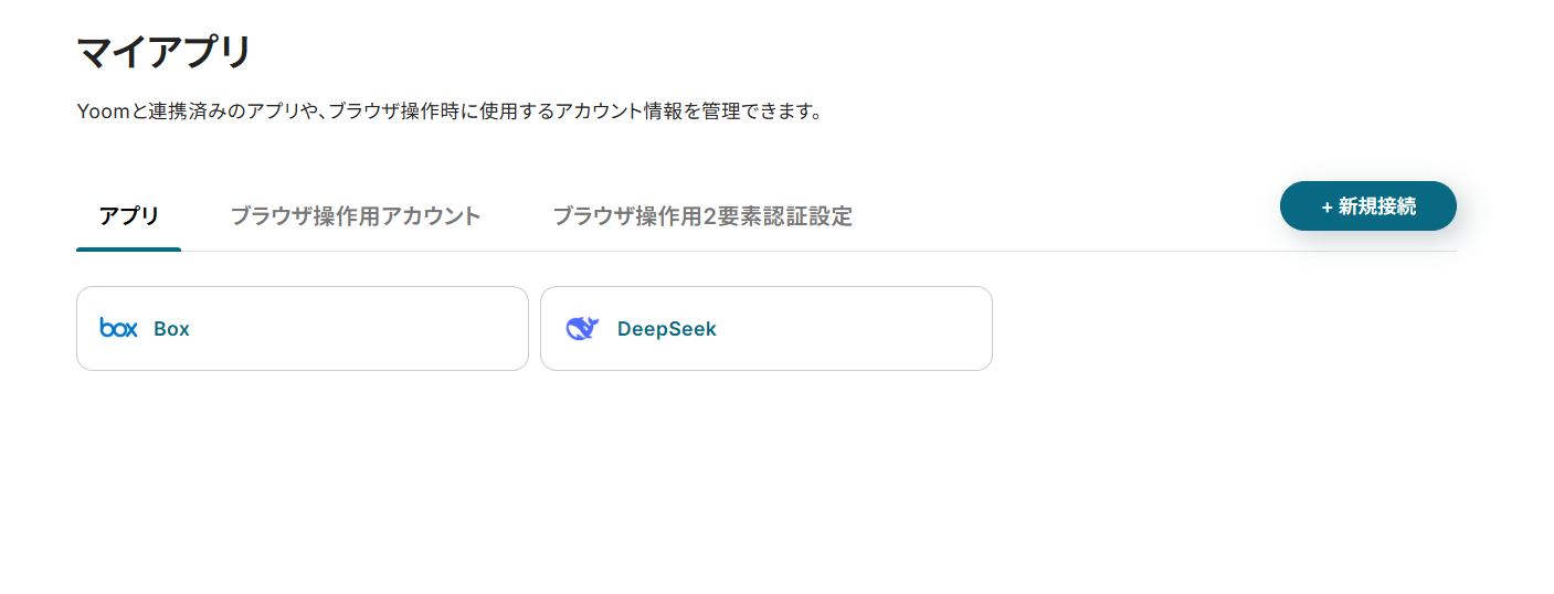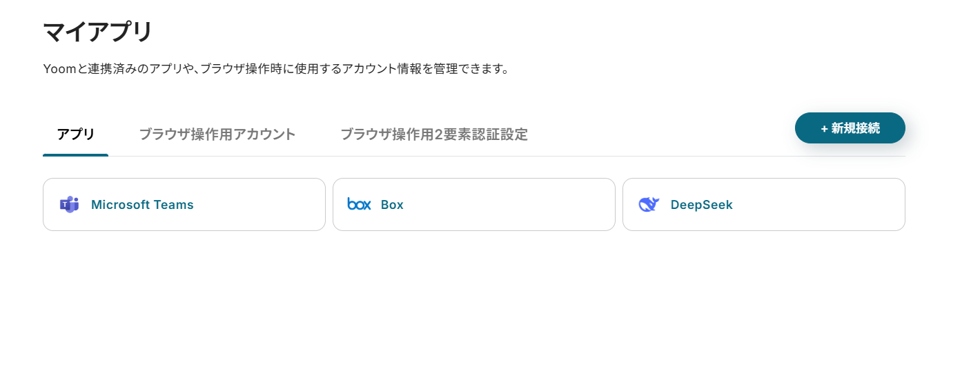 使用するアプリ(Box・DeepSeek・Microsoft Teams)のマイアプリ連携