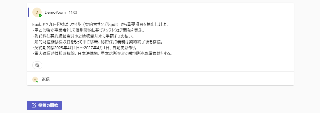 BoxにPDFがアップロードされたら重要項目をDeepSeekで抽出し、Microsoft Teamsに通知する