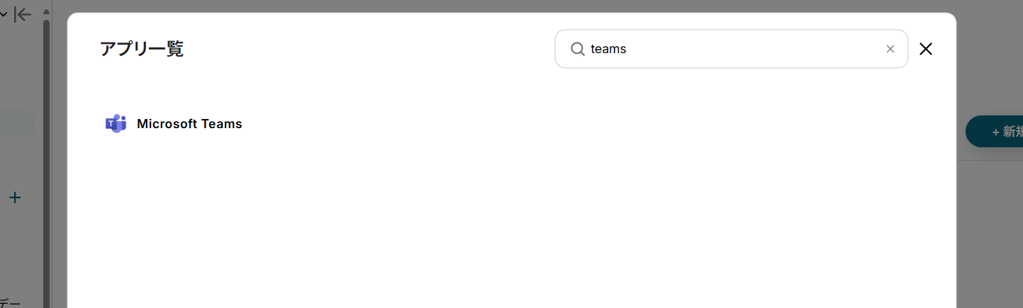 このまま、Microsoft Teamsも連携していきます。 「アプリ一覧」でMicrosoft Teamsを検索して選択。
