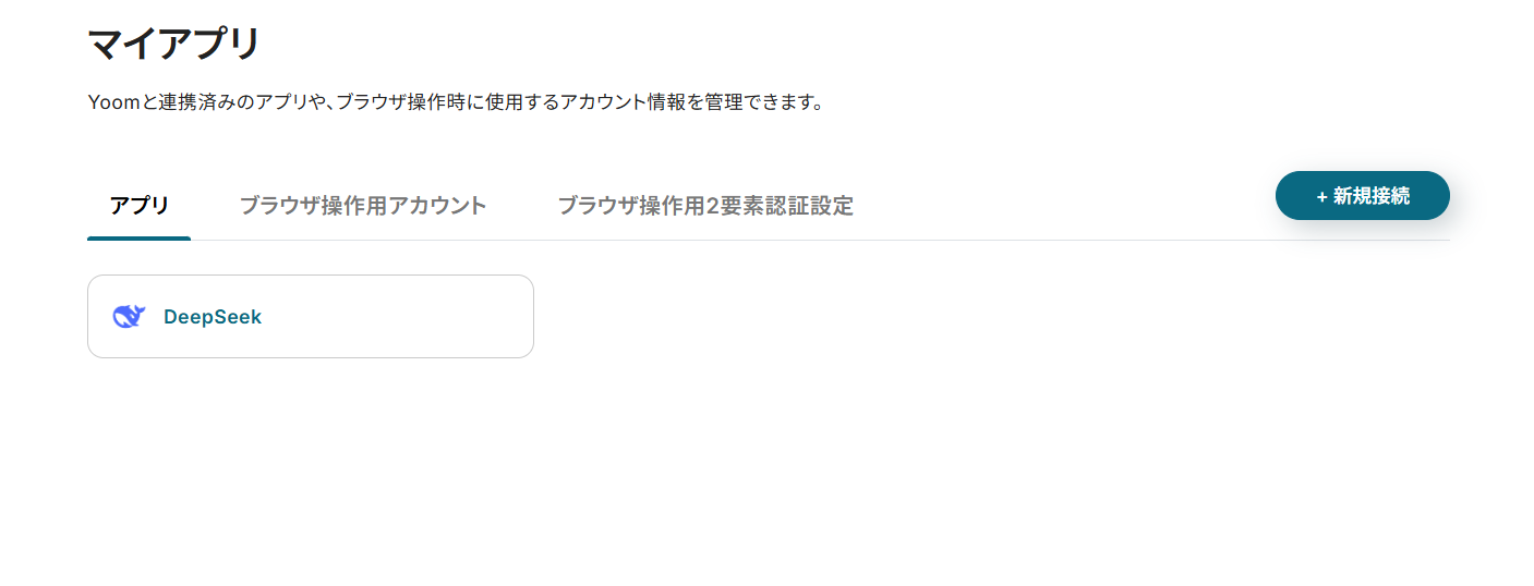 マイアプリ画面の右側にある「+新規接続」をクリック。