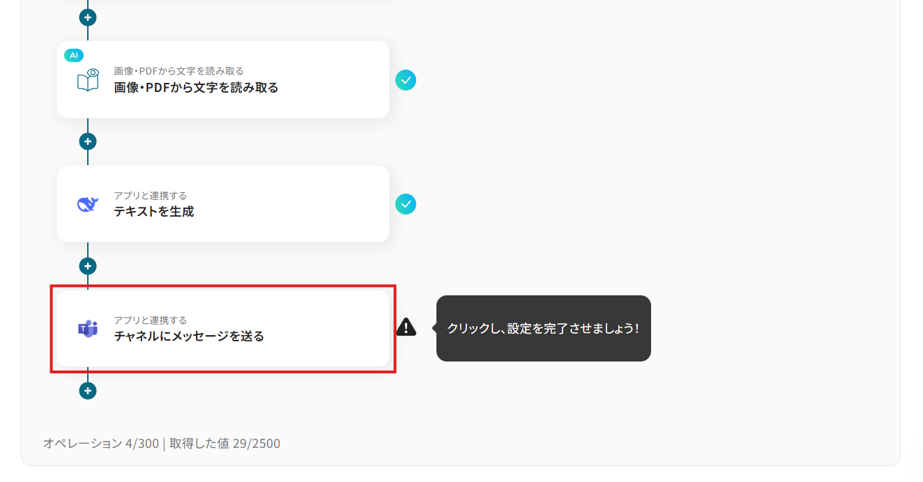 最後に、抽出した重要項目を含むメッセージをMicrosoft Teamsに投稿します。