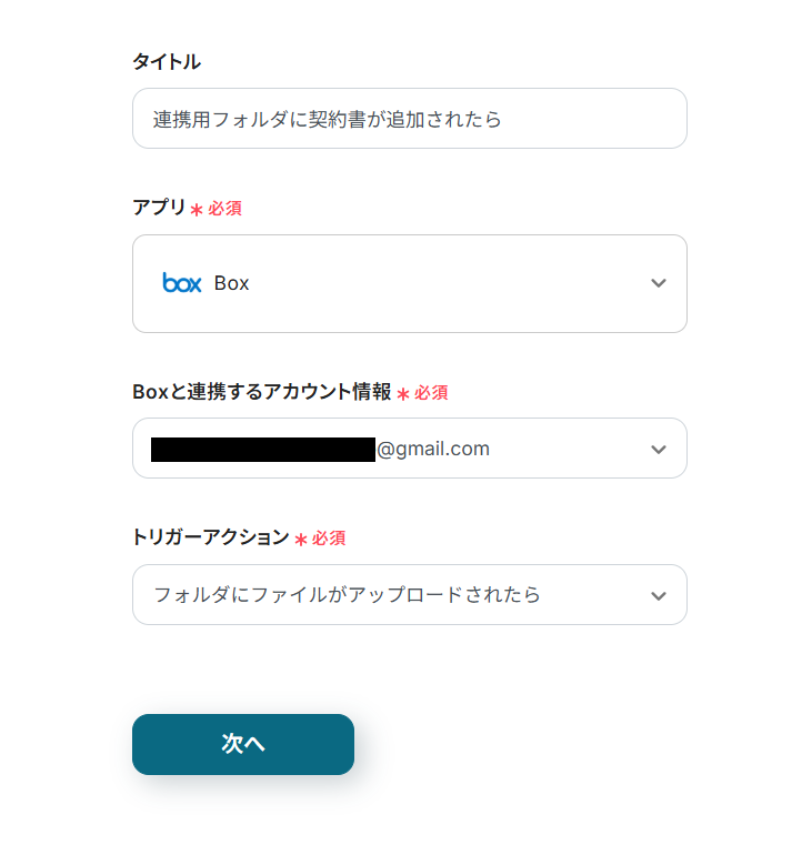 ここでは例として、「連携用フォルダに契約書が追加されたら」に変更しています。