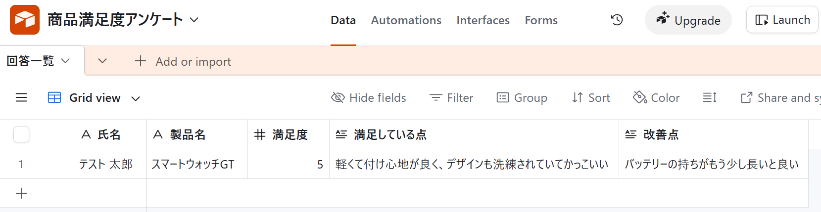 成功したら保存しましょう。 Googleフォームの回答内容から、Airtableに記録したい項目をAIが抽出してくれました!