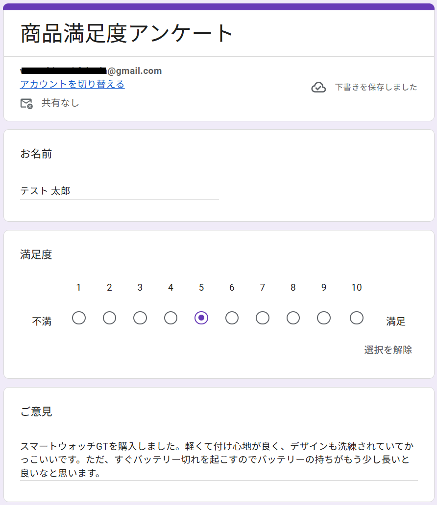 ステップ3:Googleフォームのトリガー設定 はじめに準備としてテスト用フォームを作成し、ご自身で回答しておきましょう。